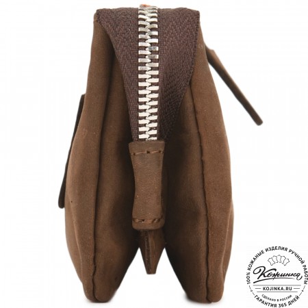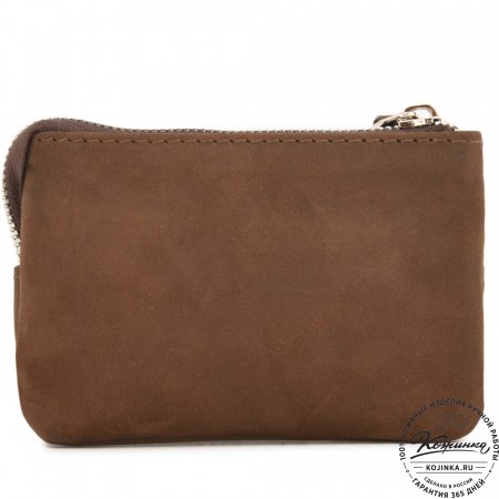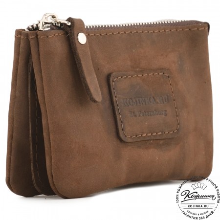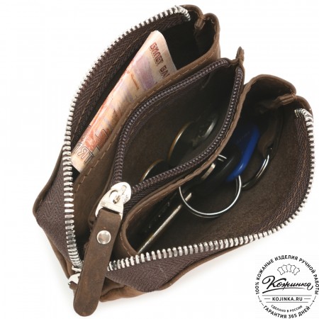 Кожаный кошелек "Солярис" – компактная модель с двумя отделениями для купюр, ключей и небольшим карманом на молнии для хранения мелочи.