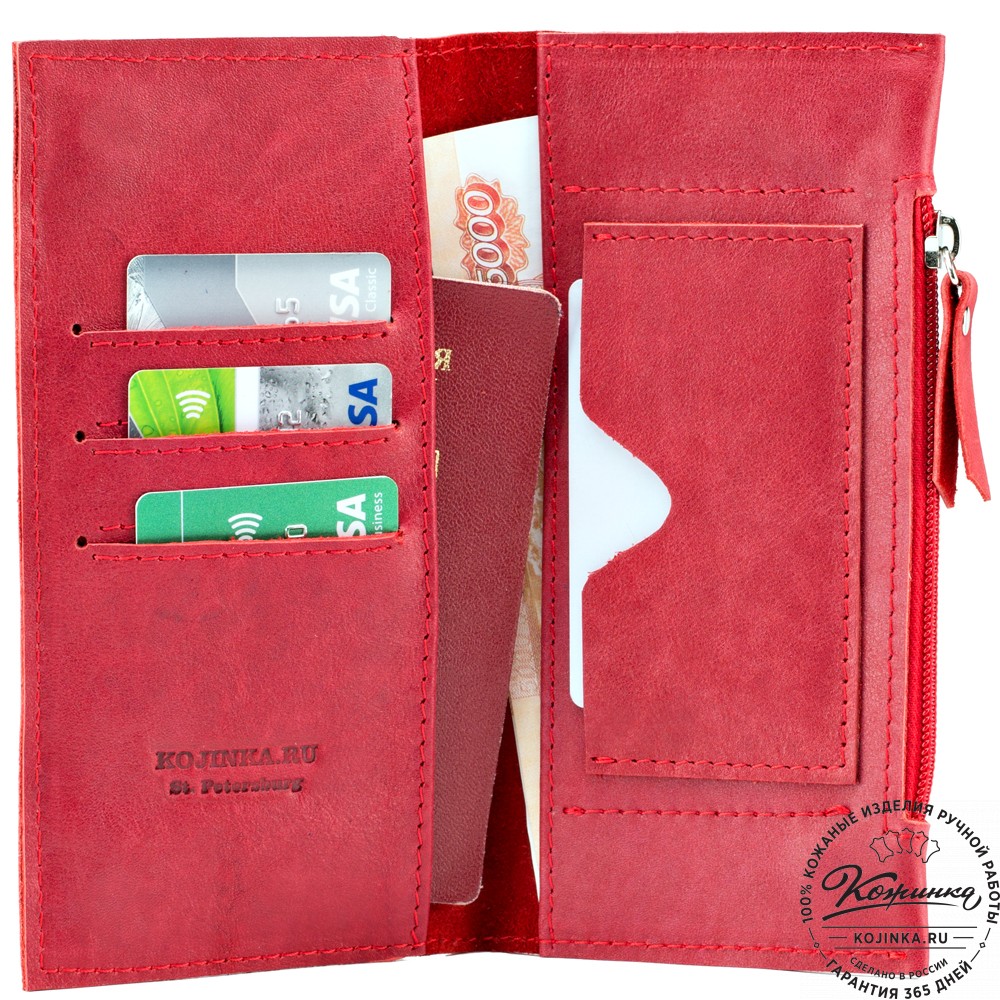 Кожаное портмоне "Арни" (красное) – стильное портмоне slim-формата из натуральной кожи.