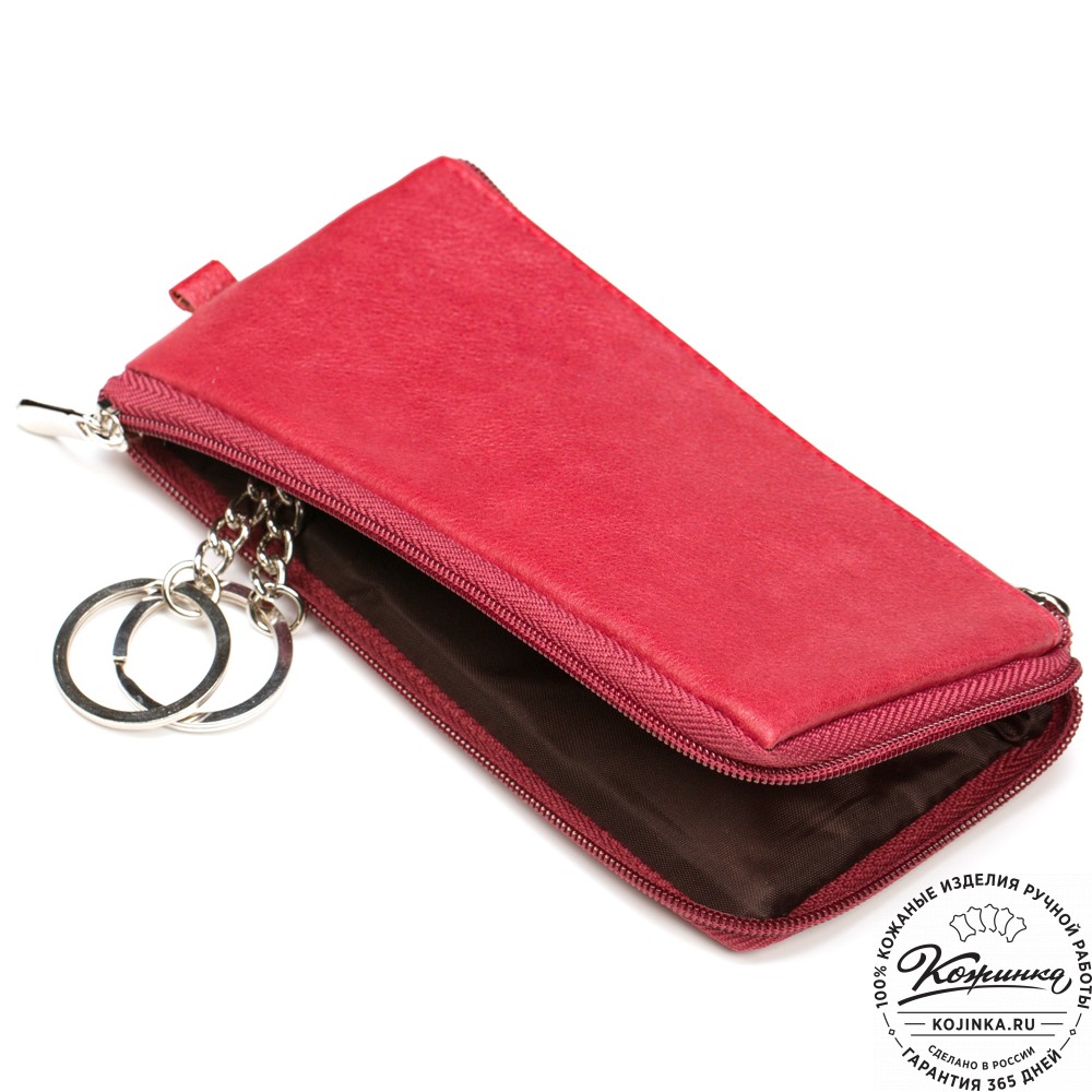 Кожаная ключница "Шанхай" (красная) – большая удобная ключница с дополнительным кармашком на молнии.
