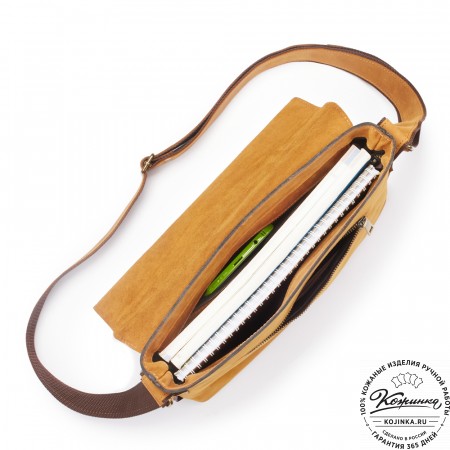 В сумку свободно помещается папка формата А4 и ноутбук с диагональю до 13 дюймов.