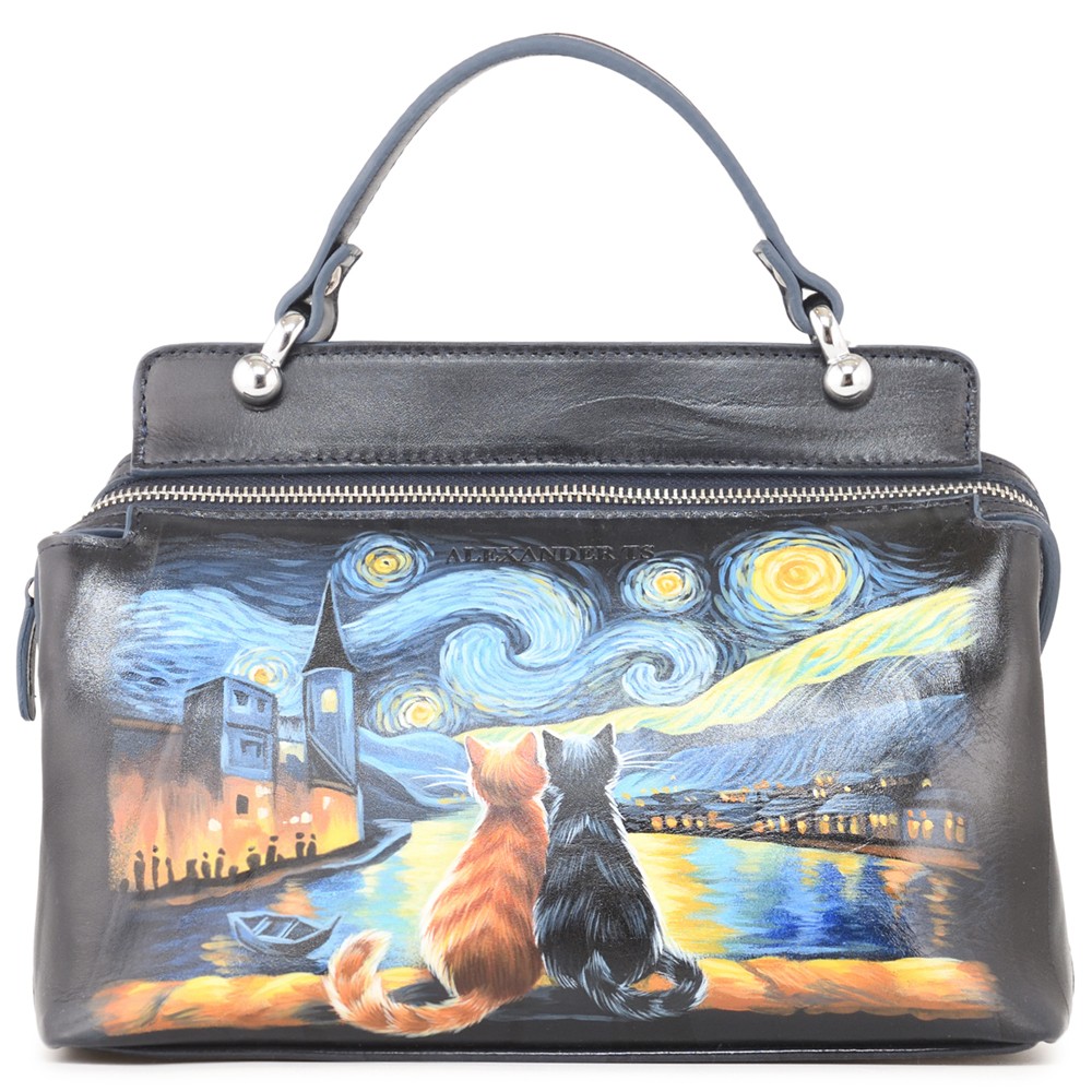Женская кожаная сумка "Коты Ван Гог" - стильная и эффектная сумочка из натуральной кожи.