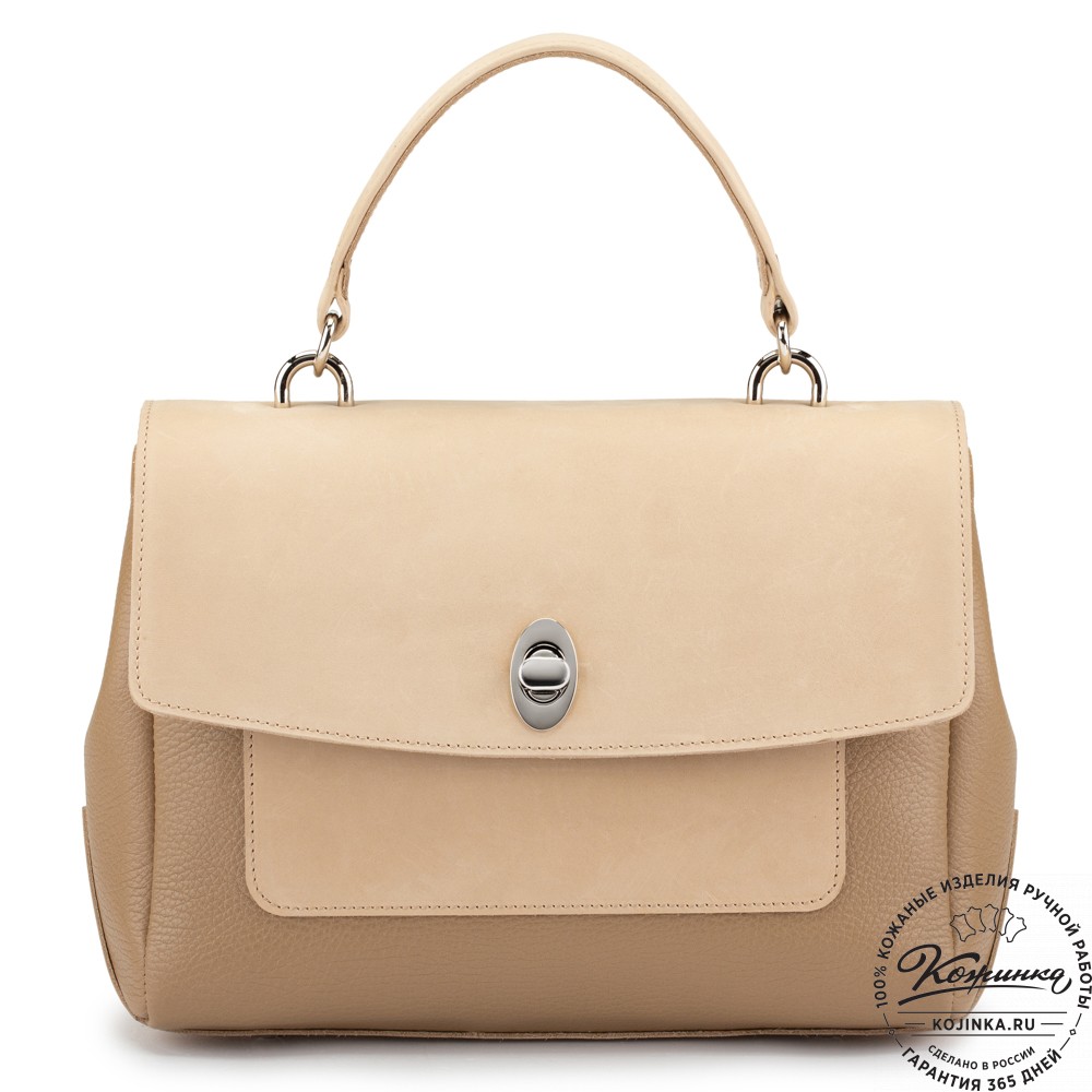 Закрывается сумка клапаном на поворотный замочек.