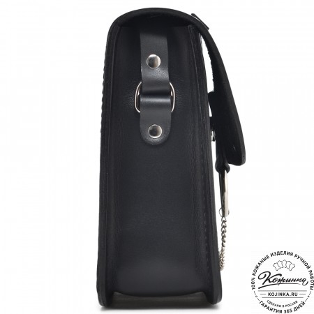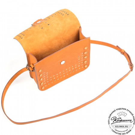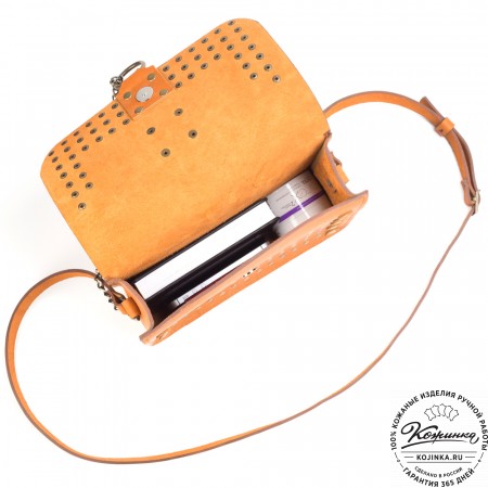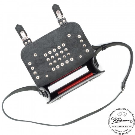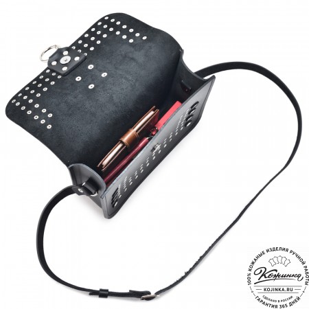 Сумочка изготовлена из качественной натуральной кожи, имеет одно отделение, которое закрывается на молнию. Сверху сумочка закрывается клапаном на магнитной кнопке.