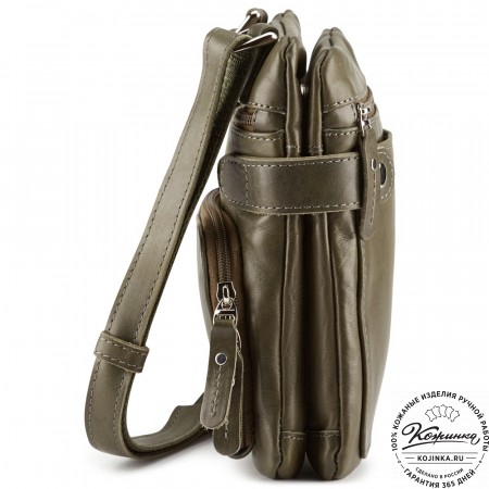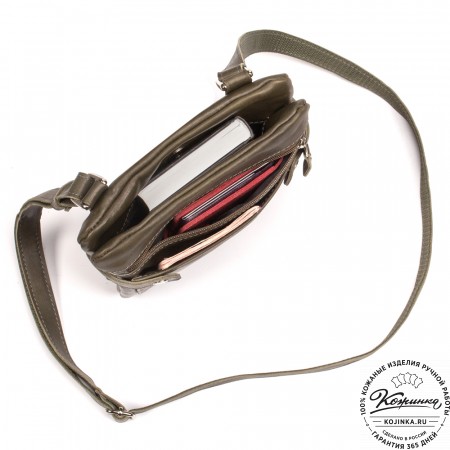Прочный плечевой ремень из кожи и тканого полиэстера регулируется по длине.