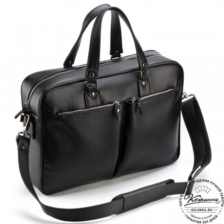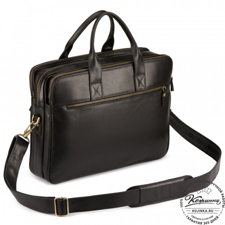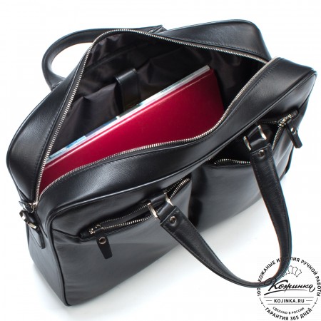 Кожаная деловая сумка "Спенсер" (чёрная) – стильная деловая сумка из натуральной кожи. Удобная и вместительная модель, отлично подходит для ноутбука и документов.