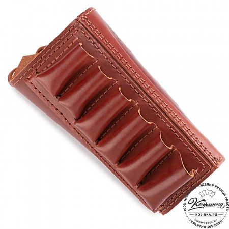 Однорядный кожаный патронташ на приклад для 6 патронов 12,16 и 20 калибров.