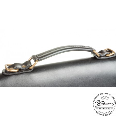 У портфеля прочная удобная ручка и кожаный плечевой ремень. Ремень съемный, крепится по бокам на небольшие карабины, регулируется по длине ременной пряжкой. Свободный конец ремня аккуратно фиксируется кожаным кольцом.