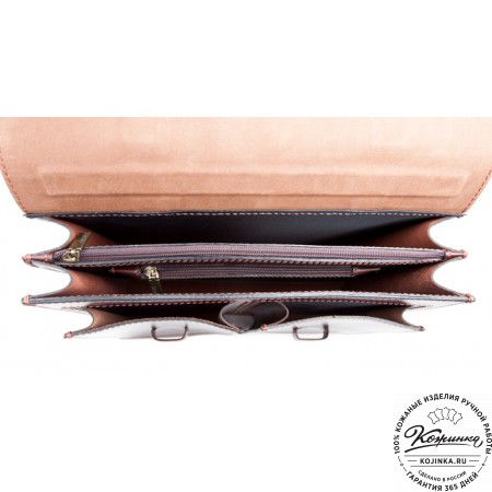 Портфель изготовлен из высококачественной натуральной кожи и прочной фурнитуры.