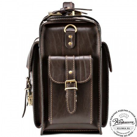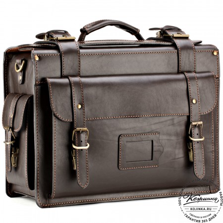 Кожаный портфель-кофр "Адъютант" (чёрный) представляет собой одно большое основное отделение из 100% толстой кожи с большим накладным карманом спереди.