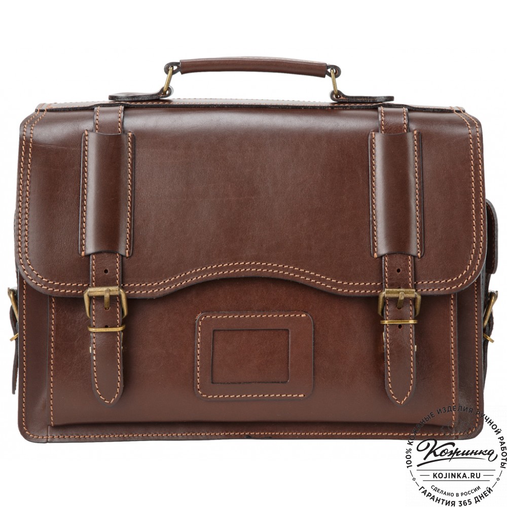 Кожаный портфель-кофр "Адъютант" представляет собой одно большое основное отделение из 100% толстой кожи с большим накладным карманом спереди.