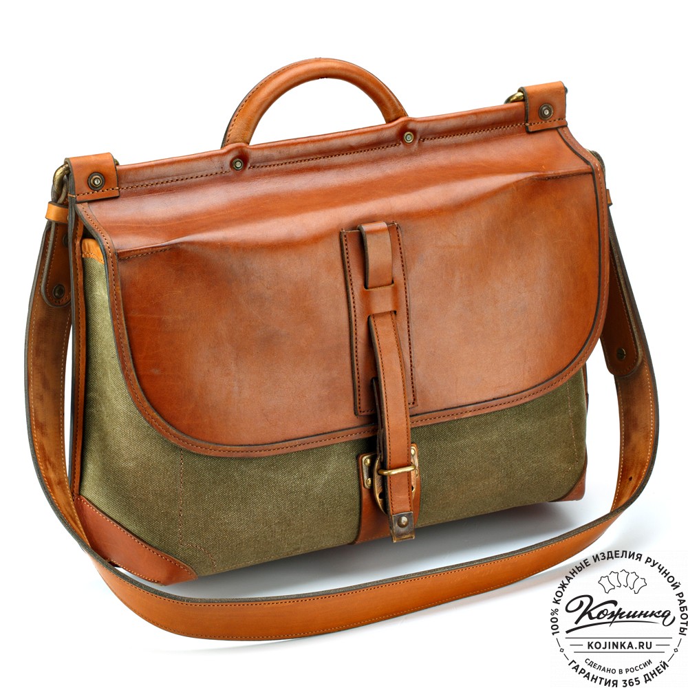 Портфель изготовлен из высококачественной жесткой шорно-седельной кожи и прочного брезента. Держит форму, отличается прочностью и износостойкостью.