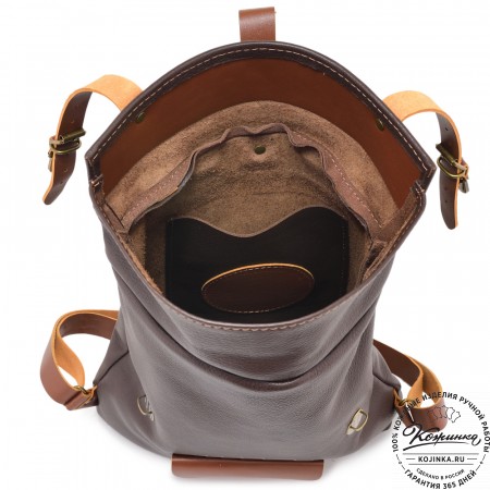 Сверху затягивается на кожаный шнурок как классический кожаный рюкзак. Оригинальный фирменный стиль компании СаШе - узнаваем везде. Непревзойдённое качество исполнения!