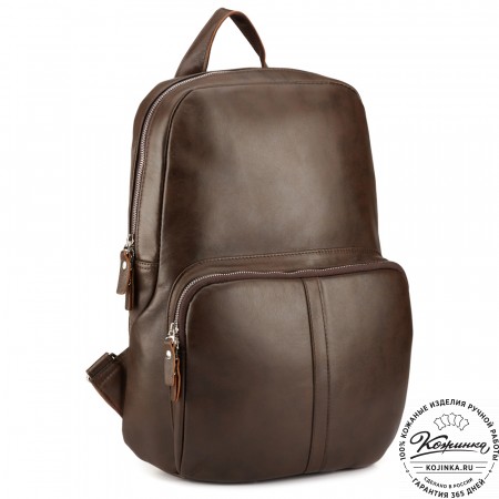 На моделях представлены рюкзак "Бэнжамин" коричневого цвета и рюкзак из кожи Крейзи хорс коричневого цвета.