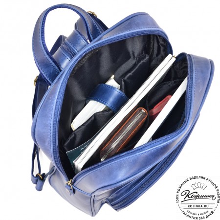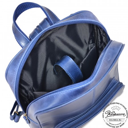 Кожаный рюкзак "Бэнжамин" (синий перламутр) – стильный городской рюкзак из качественной натуральной кожи Крейзи хорс.