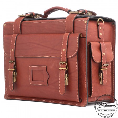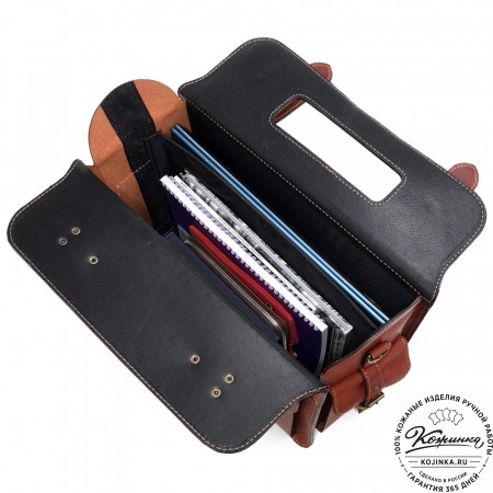 Три наружных кармана для мелких вещей. Внутри одно отделение без подкладки. Удобные кожаные лямки и ручка сверху. Больше чем для формата А4
