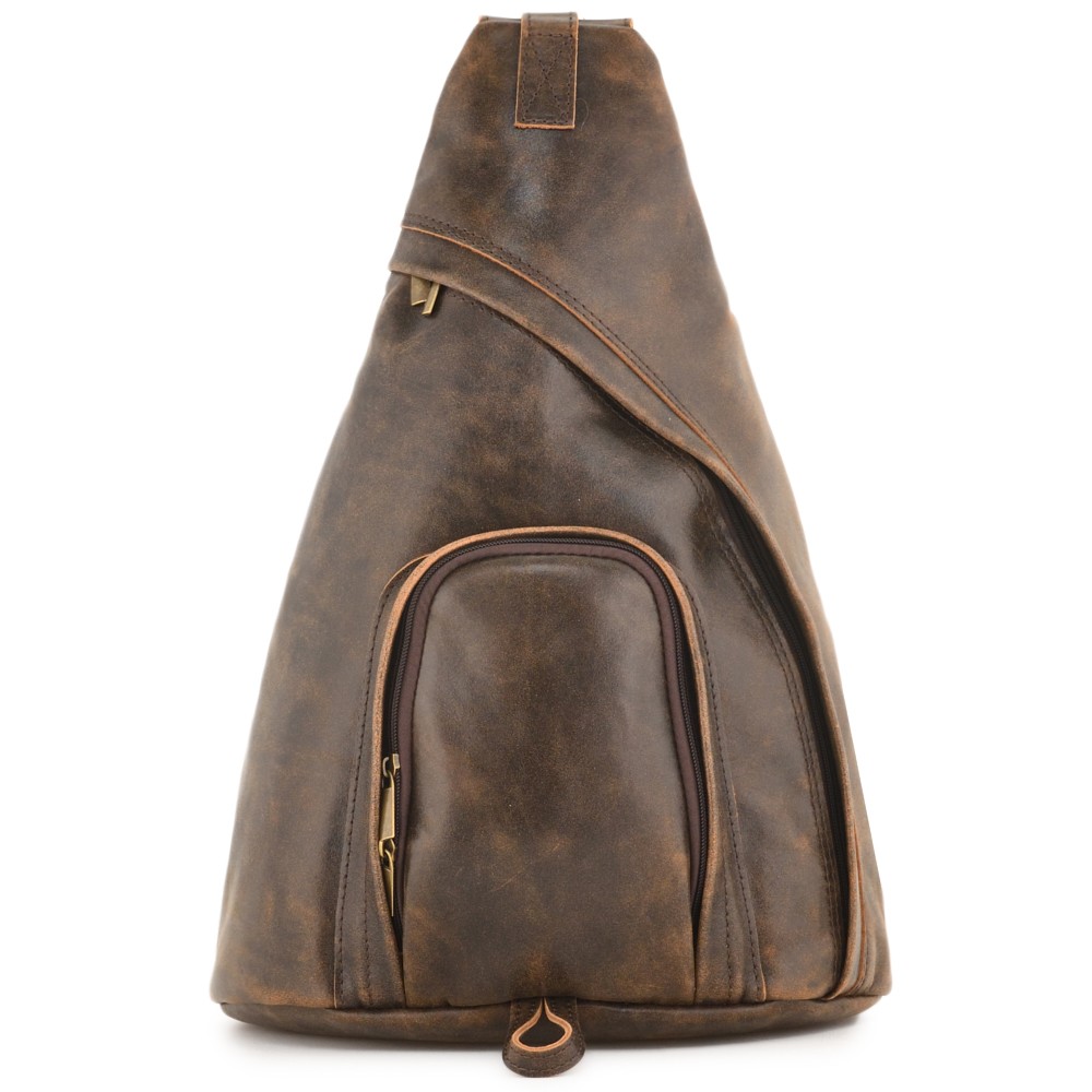 Кожаный рюкзак "Фобос" - стильный диагональный рюкзак на одну плечевую лямку.