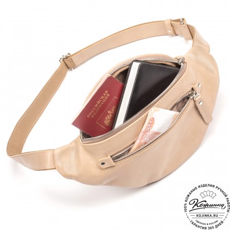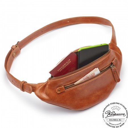 Кожаная сумка на пояс "Рики" (красная) – стильная и удобная набедренная сумочка из мягкой натуральной кожи.