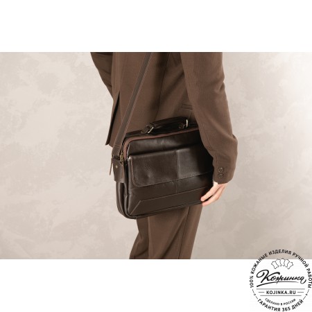 На фото модели представлена сумка "Марк" коричневый крейзи.
