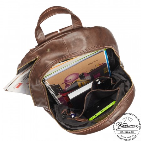 Рюкзак изготовлен из прочной, качественной натуральной кожи и фурнитуры. Внутри подкладка из ткани.