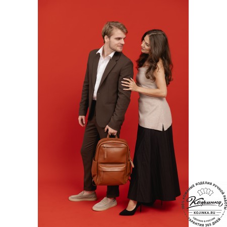 На модели представлен рюкзак "Гудвин" в цвете рыжий антик.