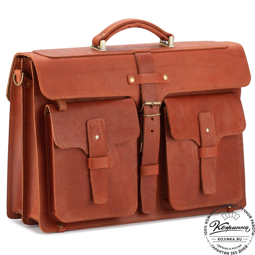 Благодаря прочной толстой коже портфель отлично держит форму.