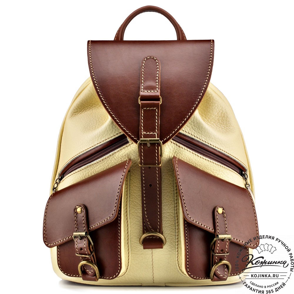 Кожаный рюкзак "Пилот" (жёлтый) - универсальный небольшой кожаный рюкзак на каждый день!