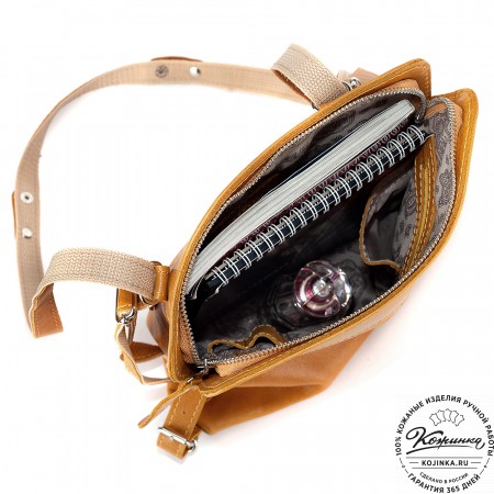Кожаные лямки регулируются по длине ременными пряжками, рюкзак комфортно сидит на спине.