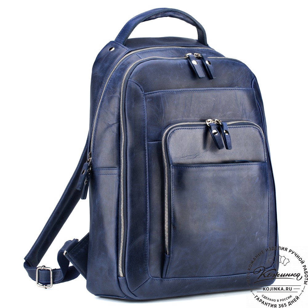 Кожаный рюкзак "Марвин" (синий воск) - стильный рюкзак из натуральной кожи, удобная и вместительная модель с интересным функциональным дизайном.