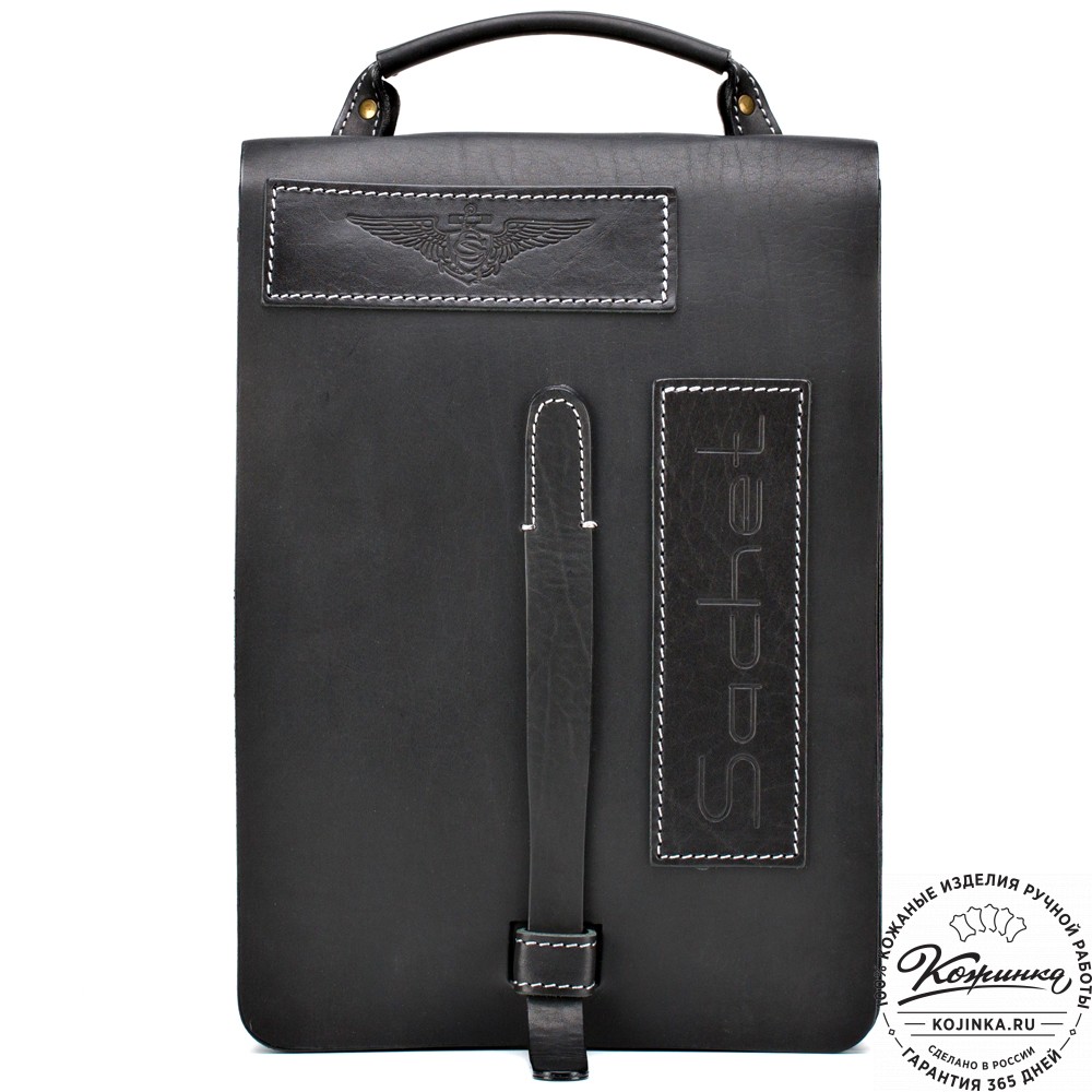 Кожаная сумка "Штурман" (черная) – стильная мужская сумка-планшет из прочной натуральной кожи.