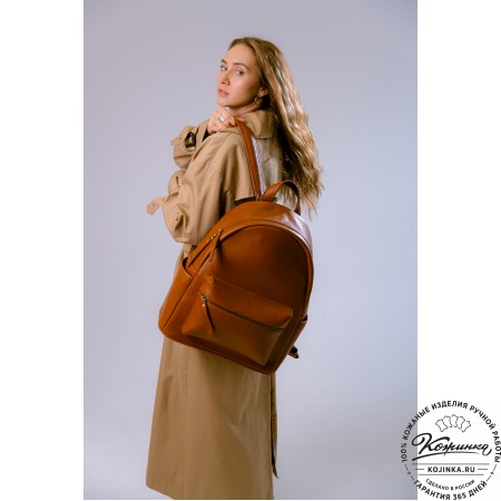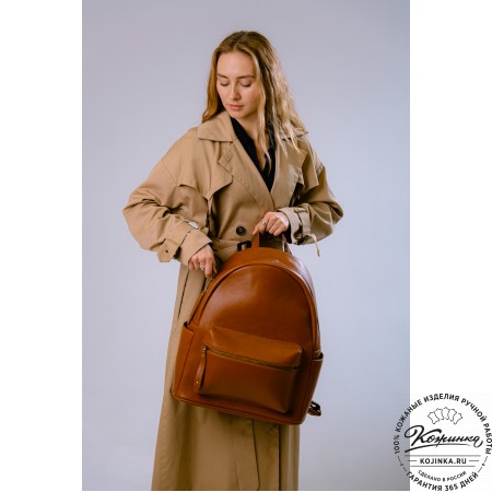 Крепкие кожаные лямки регулируются по длине. Есть удобная ручка.