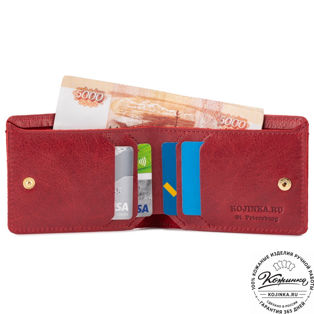 Кожаное портмоне "Рим" - отличный вариант небольшого бумажника с отделениями для карт и для мелочи.