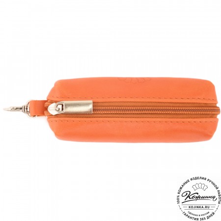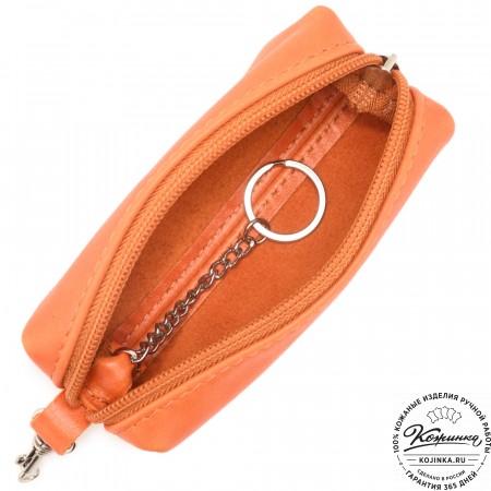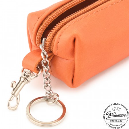 Эта модель представляет собой открытый кожаный чехол с металлическим кольцом на цепочке внутри.