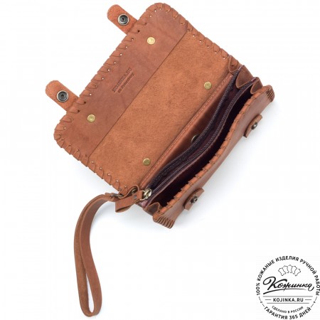 Практичная и удобная модель со множеством карманов и отделений, которая вполне может заменить портмоне. Однако, при необходимости клатч можно носить и в руках, используя съемную ручку-петельку.