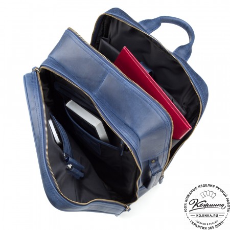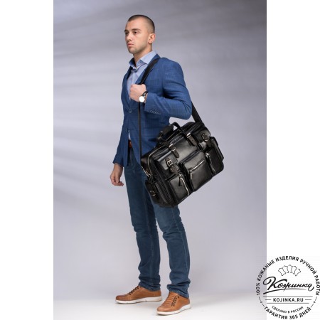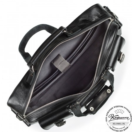 У сумки крепкие кожаные ручки и съемный кожаный плечевой ремень. Ремень имеет наплечник, регулируется по длине, крепится по бокам на карабины.